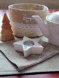 Ve venkovském stylu, kombinace vánočního motivu a béžové s lněným efektem.